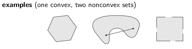 举个例子,$S=\left\{x\in\mathbf{R}^m|\space|p(t)|\le1,\space |t|\le\dfrac{\pi}{3}\right\}$,其中 $p(t)=\sum\limits_{k=1}^mx_k\cos kt$($p(t)$ 为三角多项式,trigonometric polynomial)就是一个凸集。