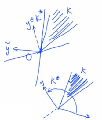 (如果 $K$ 是尖的,那么 $K^*$ 就是钝的,二者是互补、对偶的)数学中有很多种类似的关系,例如共轭、转置等等。