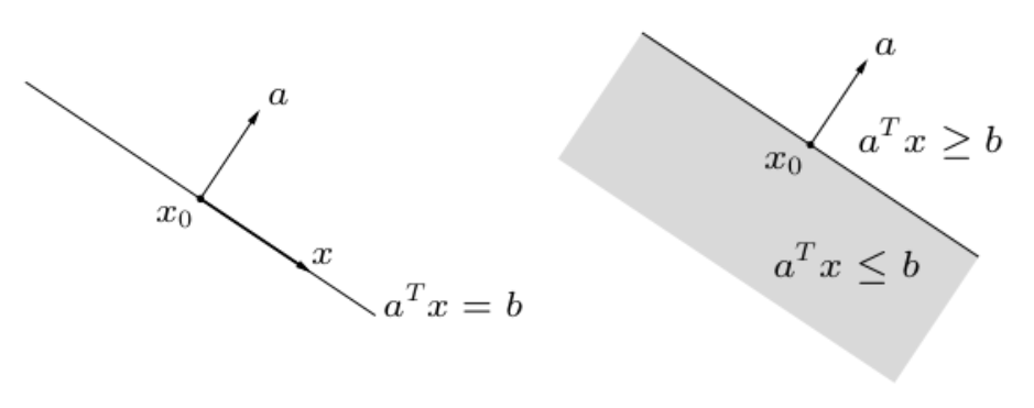半空间的定义:$\left\{x|a^Tx\le b\right\}$,其中 $a\ne0$;