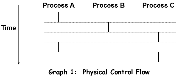 控制流:从机器打开到关闭的过程中,处理器只做一件事:读指令、执行指令,一个周期做一个指令。多核的机器则每个核心依次交替执行指令。这些指令序列被称为控制流。硬件正在执行的实际指令序列就被称为物理控制流。