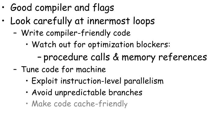 - 让它少预测点,就少错一点(减少分支结构)。这方面的方法大致有 循环转换、unrolling loops 和 conditional moves(回想之前的 General Condition Translation);