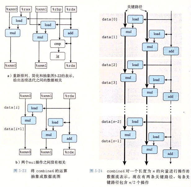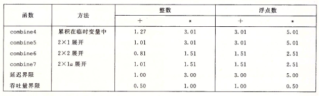 这两种方式(separate accumulator、re-association)都能大幅度缩短关键路径,让程序性能突破 latency 瓶颈,接近吞吐量:
