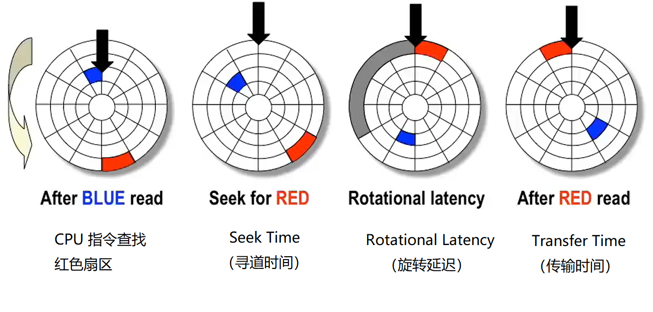 一般情况下机械硬盘的 寻道时间 > 旋转延迟 ≈ 4 ms >> 传输时间;