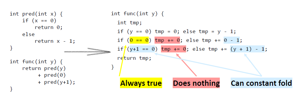 - 全局的优化:例如 循环结构转换、代码移动(减少不必要的运算)、内联化、全局的相近表达式复用消除;