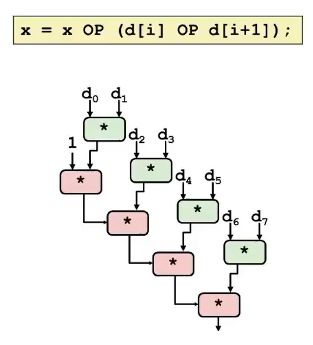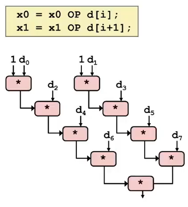 由于这些乘法运算仍然前后依赖,所以尽管我们进行 unrolling loop 来减小每个 iteration 造成的开销,仍然无法超过 latency bound。