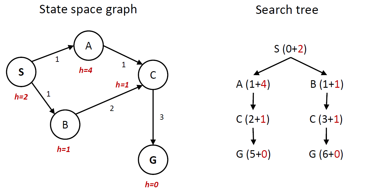 - 搜索树结点数一般远大于状态图,因为搜索树中可以有多个结点代表同一个状态;