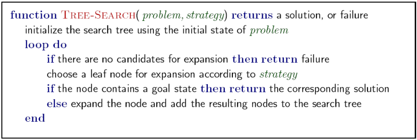 - Fringe (原义条纹 / 边缘,这里指的是 a set of leaf nodes that are waiting to be expanded,通常是存放等待处理的数据结点的结构,可以是栈、队列等);