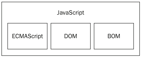 虽然 JavaScript 和 ECMAScript 通常都被人们用来表达相同的含义,但 JavaScript 的含义却比 ECMA-262 中规定的要多得多(JavaScript 的 3 个主要组成部分):