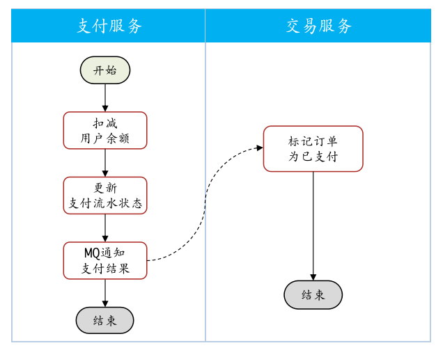 首先,支付服务会正在用户支付成功以后利用 MQ 消息通知交易服务,完成订单状态同步;