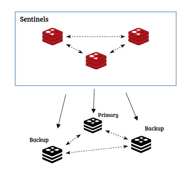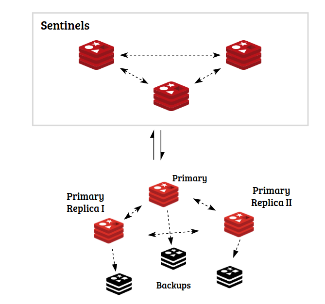 例如,我们可以对 Redis 采用这种架构策略。一个 Redis 节点作为 primary,其他两个 redis 作为 backup server;