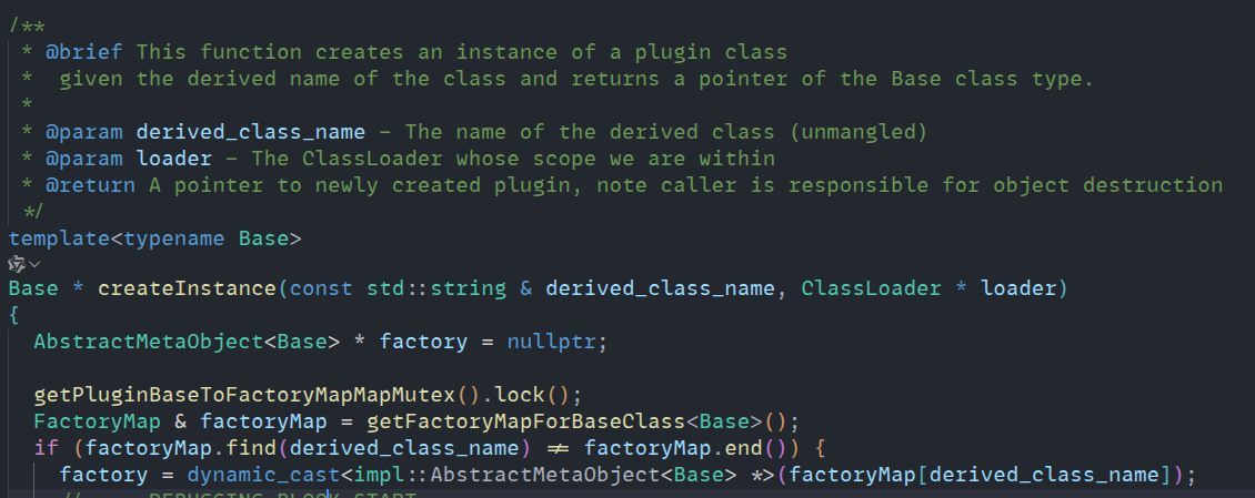 我们发现,class_loader 中,创建插件中对象实例的函数中 dynamic_cast 总是返回空指针,提示转换失败。