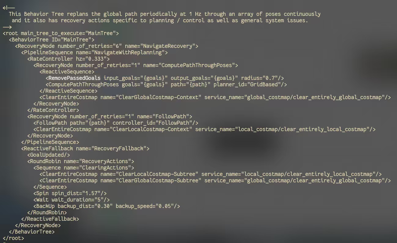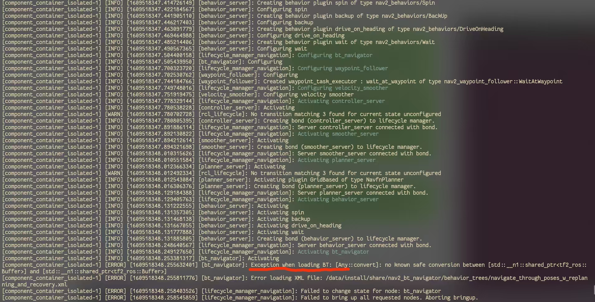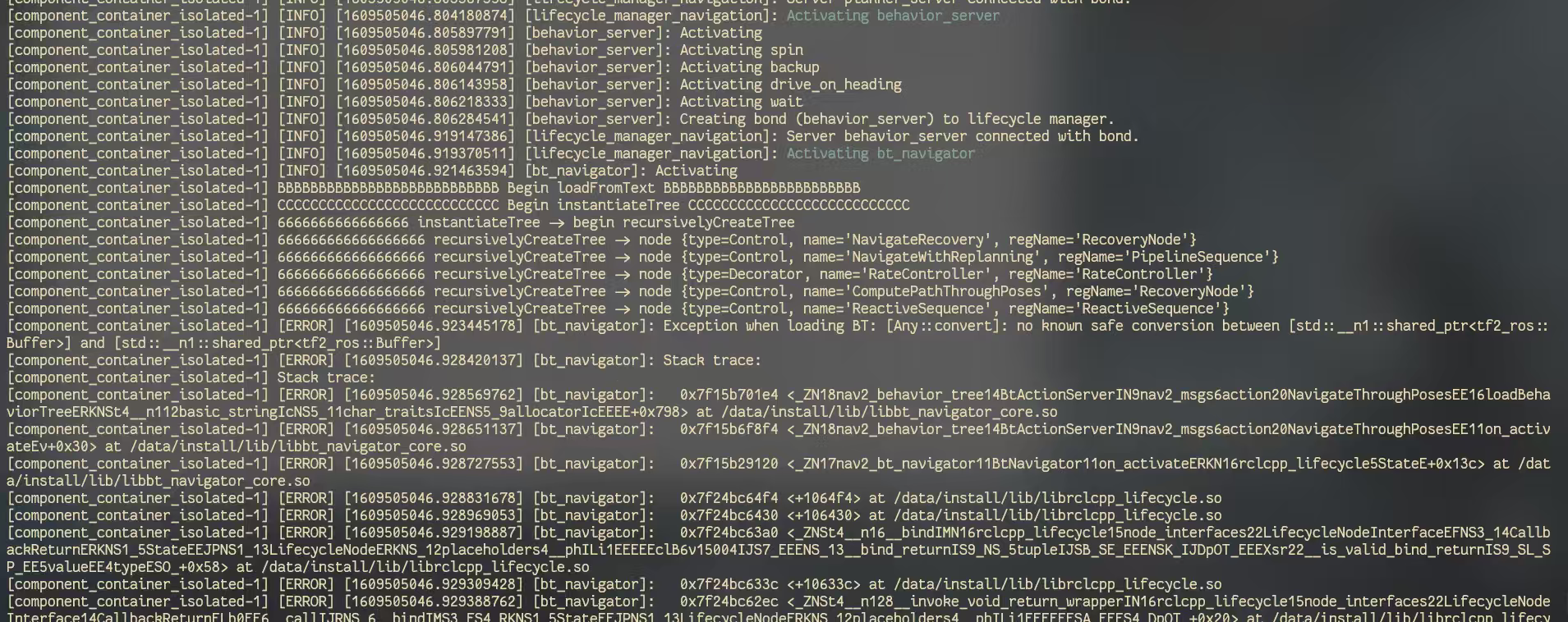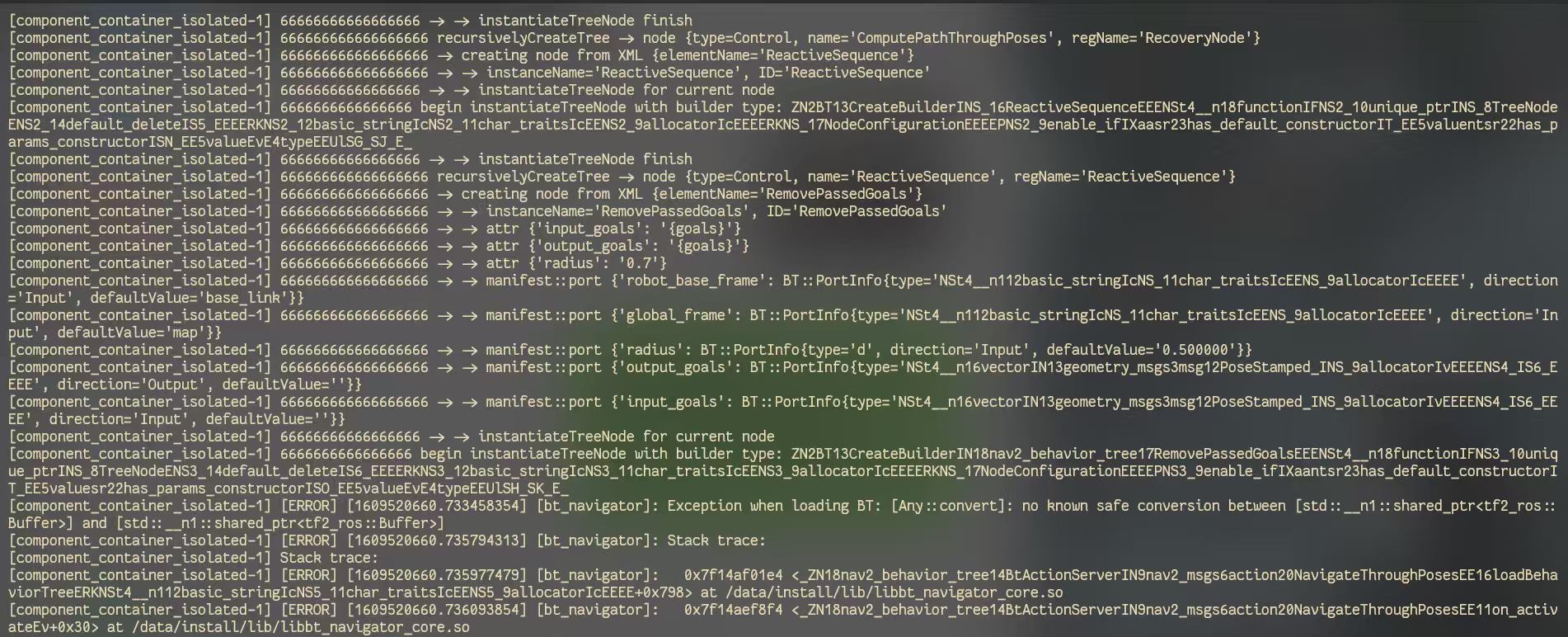 这个问题似乎是和 Behavior Tree 解析 XML(.../navigate_through_poses_w_replanning_and_recovery.xml)和实例化有关,并且看起来和前一个问题没关系(暂时的)。