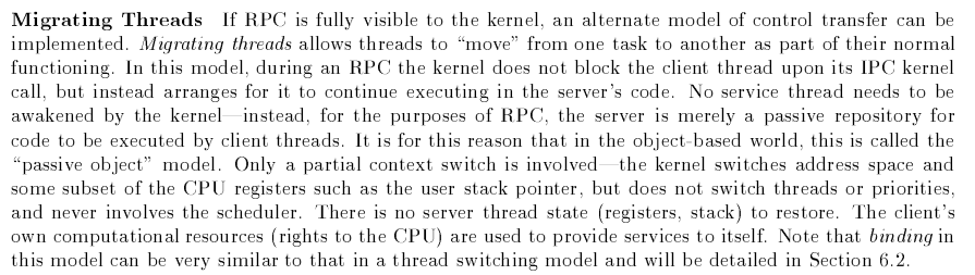 relay-seg解决);对多线程应用不友好的编程模型(XPC 提供 migrating thread model 模式的编程接口,1994 Bryan Ford);