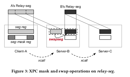 xcall / xret指令,并且用 relay memory segment 实现 parcels 来完成 data transfer。期间注意 kernel 还是需要管理 per-thread XPC registers;